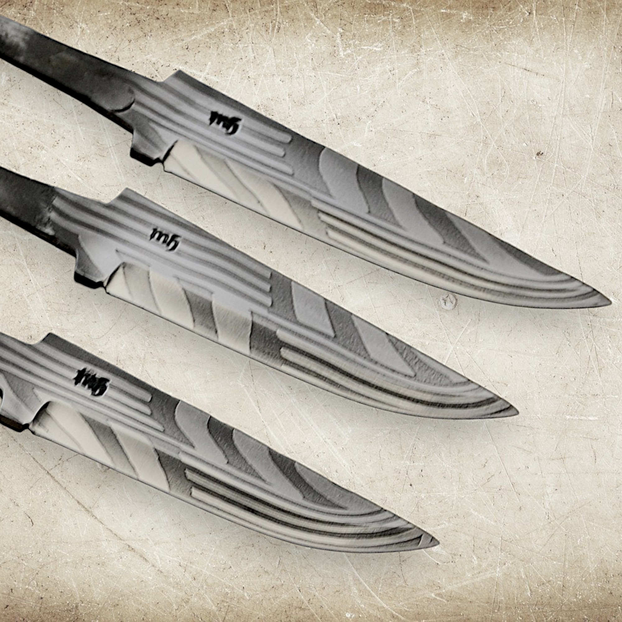 Helstål mønster smidd blad av to herdbare ståltyper med syret og polert overflate.
