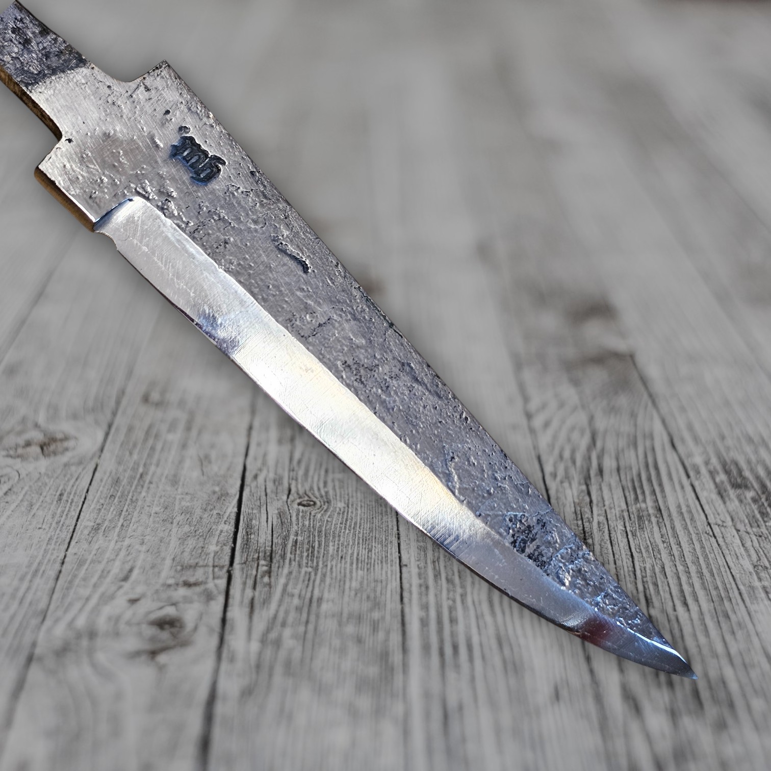 3-lags smidd knivblad. Innlegg av karbonstål med en hardhet på HRC56-58.