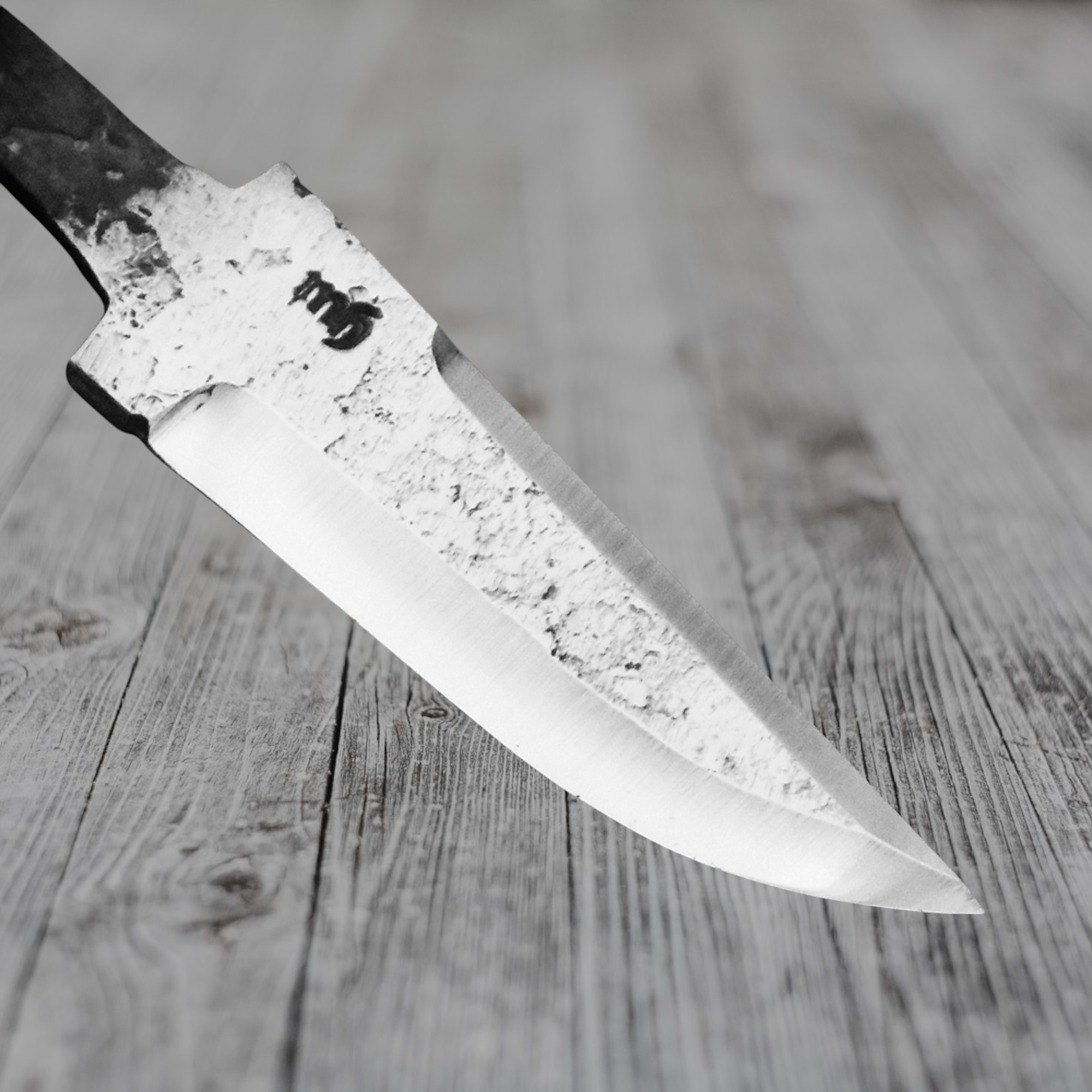 3-lags smidd knivblad. Innlegg av karbonstål med en hardhet på HRC56-58.
