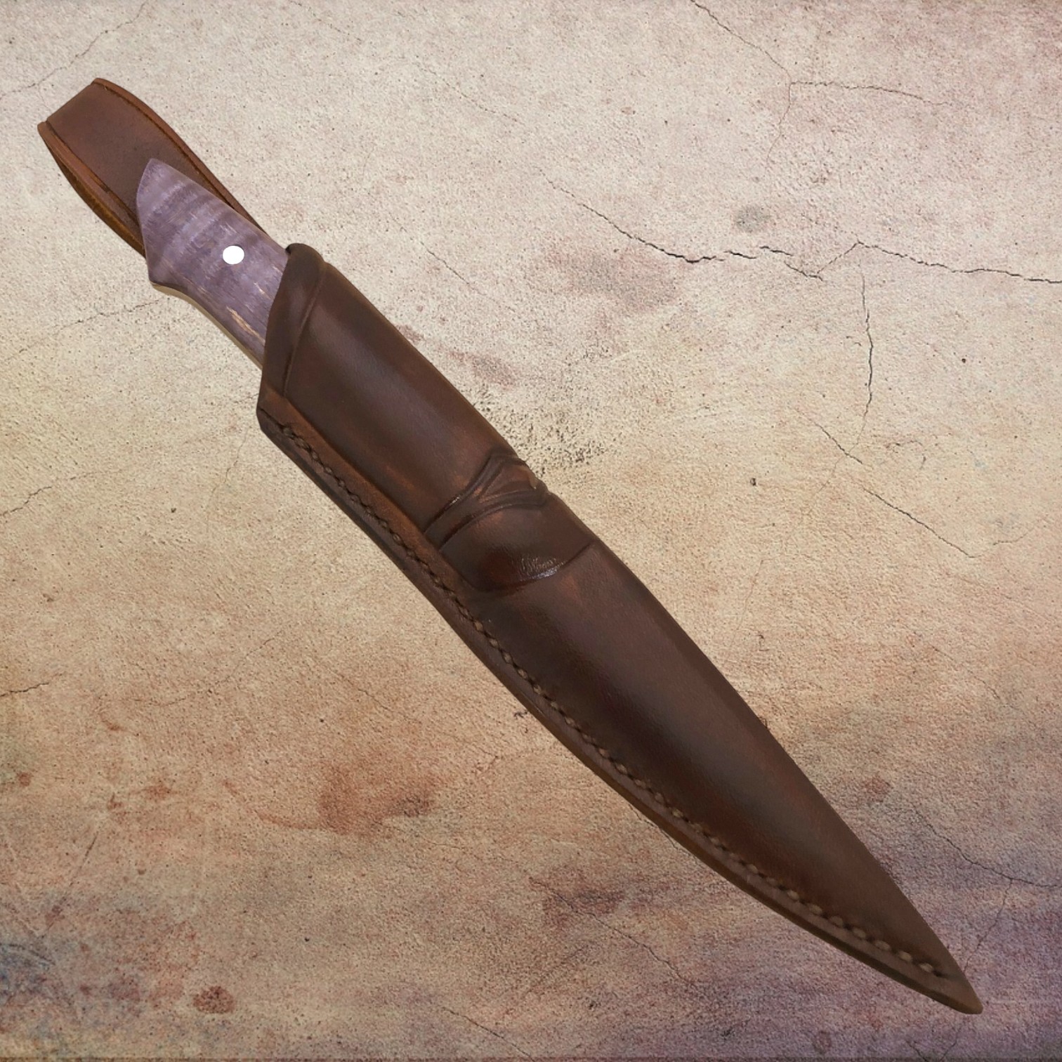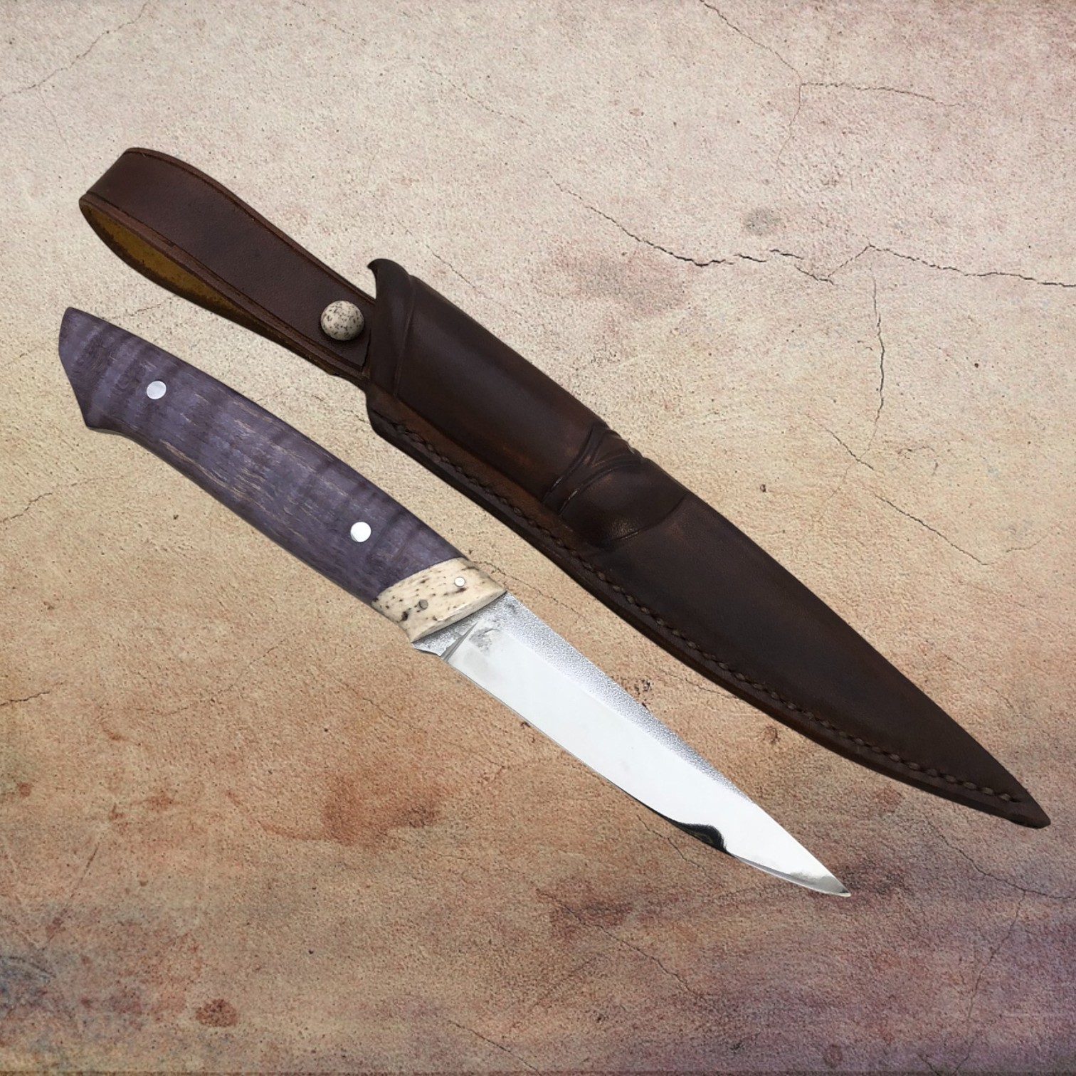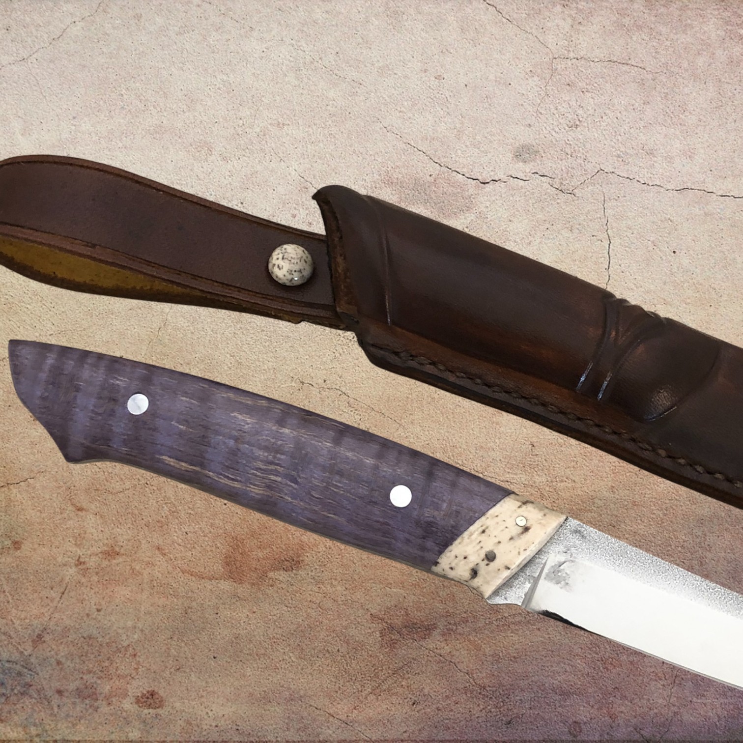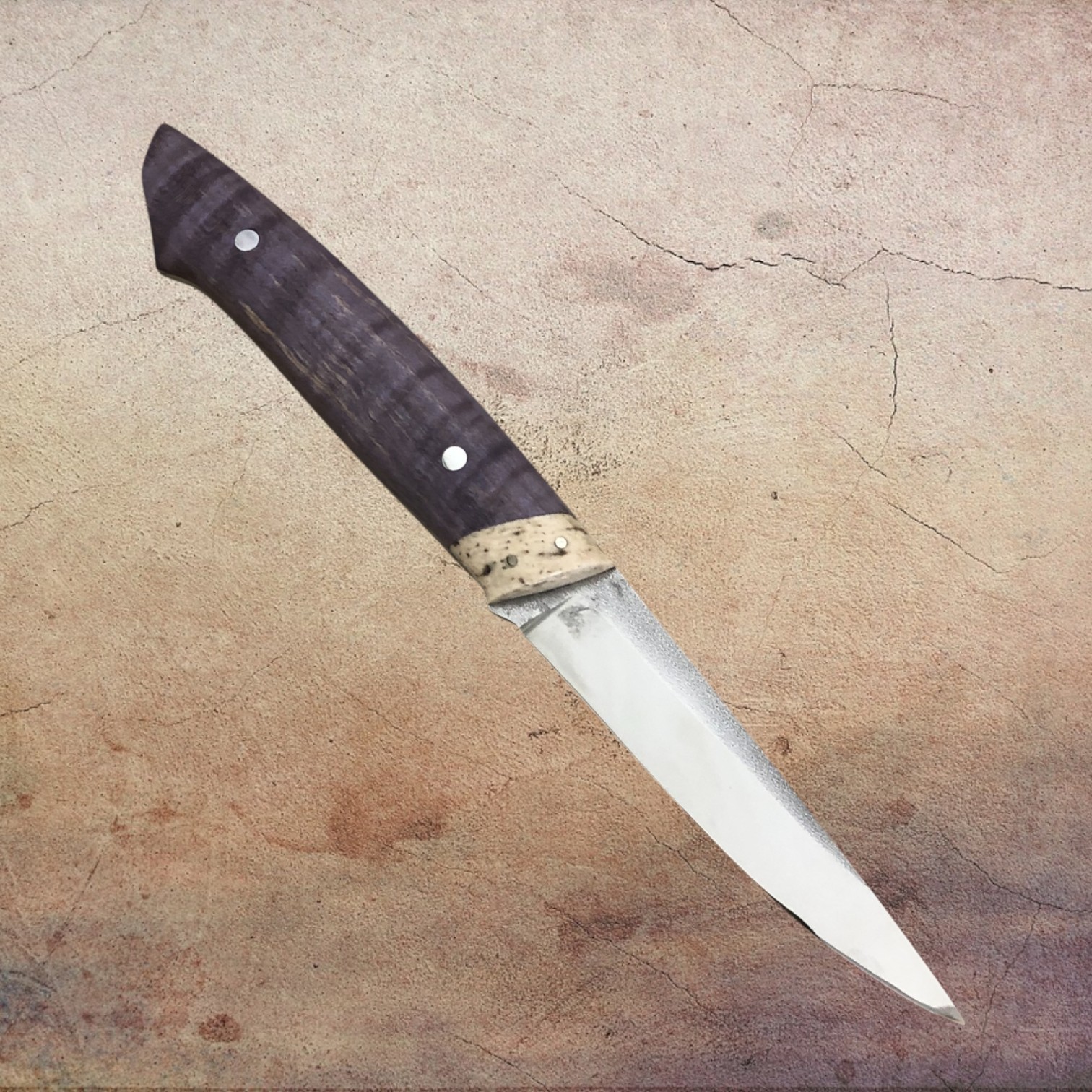 Skaft: Flammebjørk og hvalross kjeve med nitter av aluminium