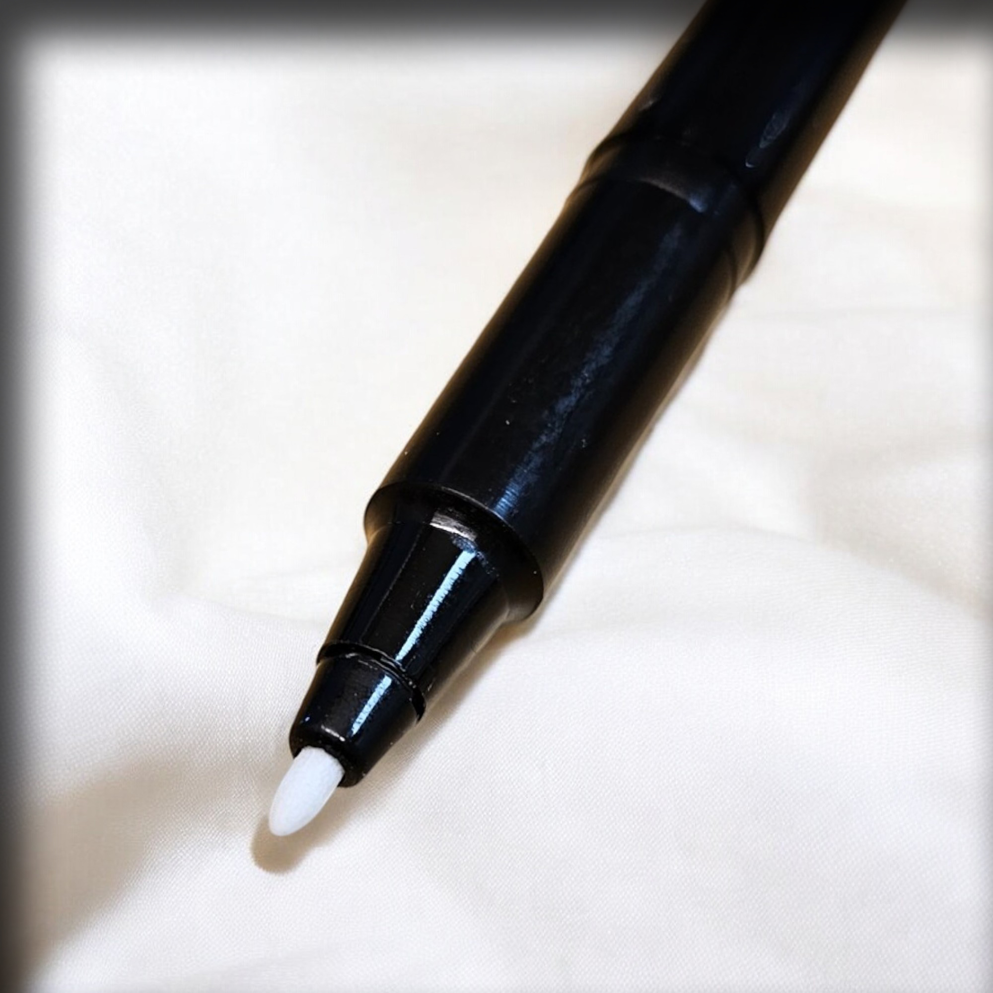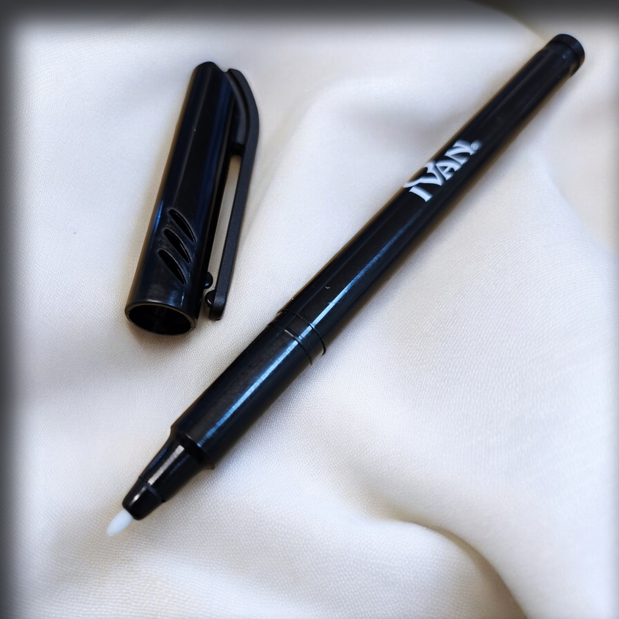Åpne pennen i toppen, ta ut hylsen, dypp hylsen i lærfargen og sett den inn i penna igjen.