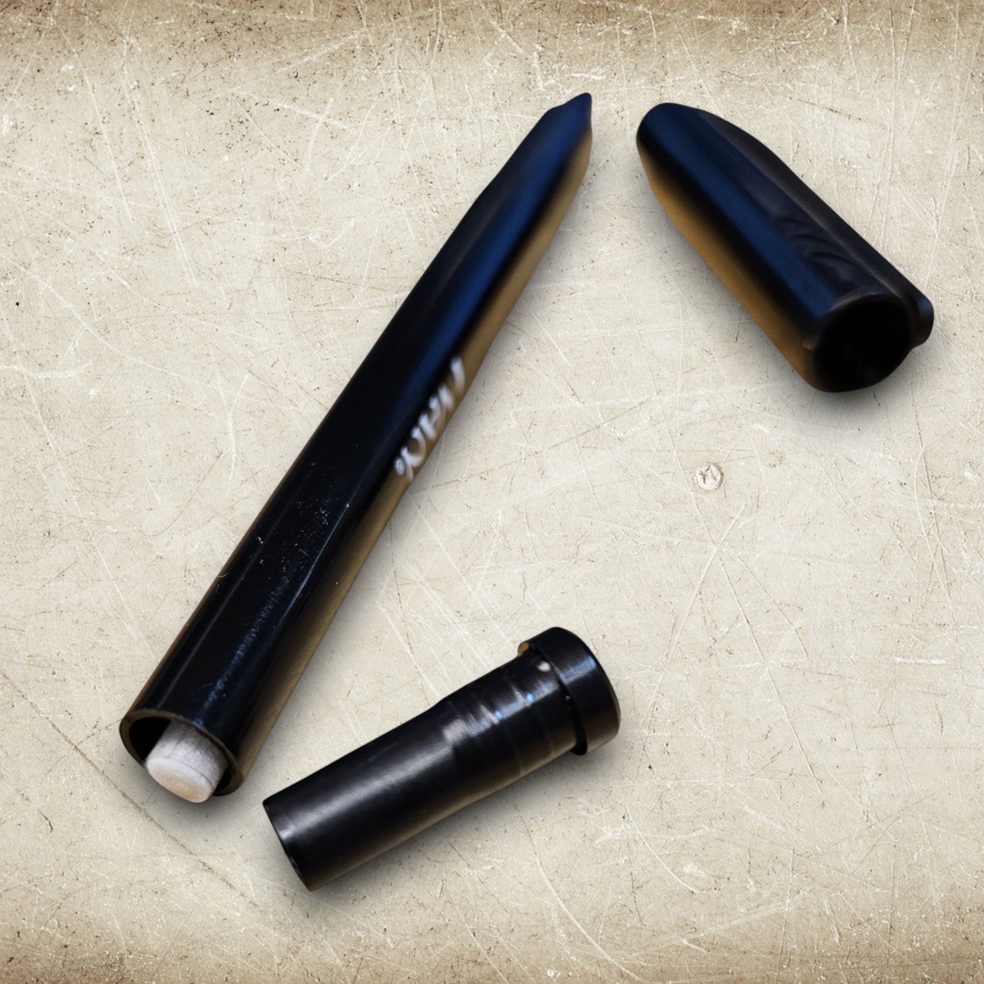 Åpne pennen i toppen, ta ut hylsen, dypp hylsen i lærfargen og sett den inn i penna igjen.