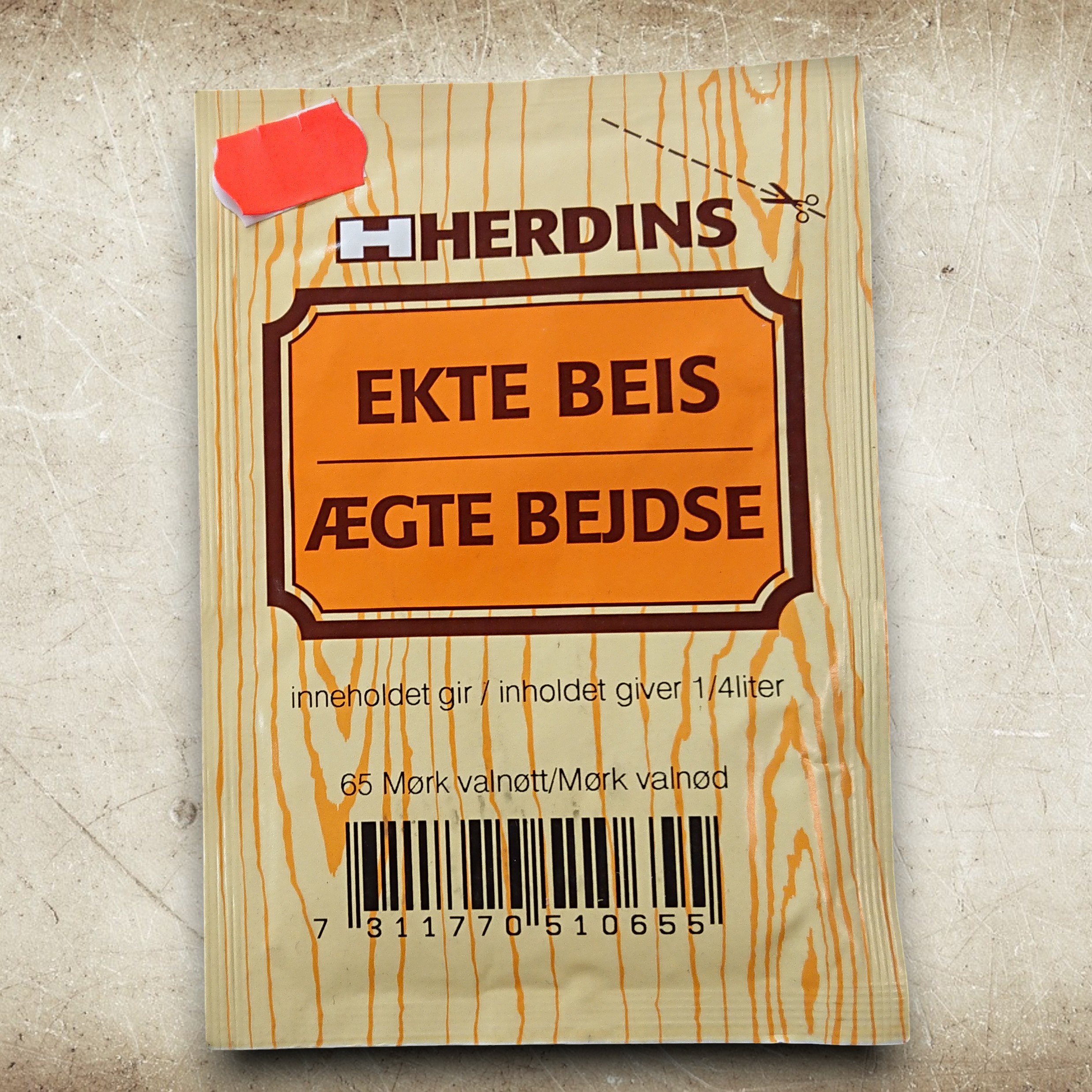 Pulverbeis som blades ut i vann. Gir 1/4 liter beis.