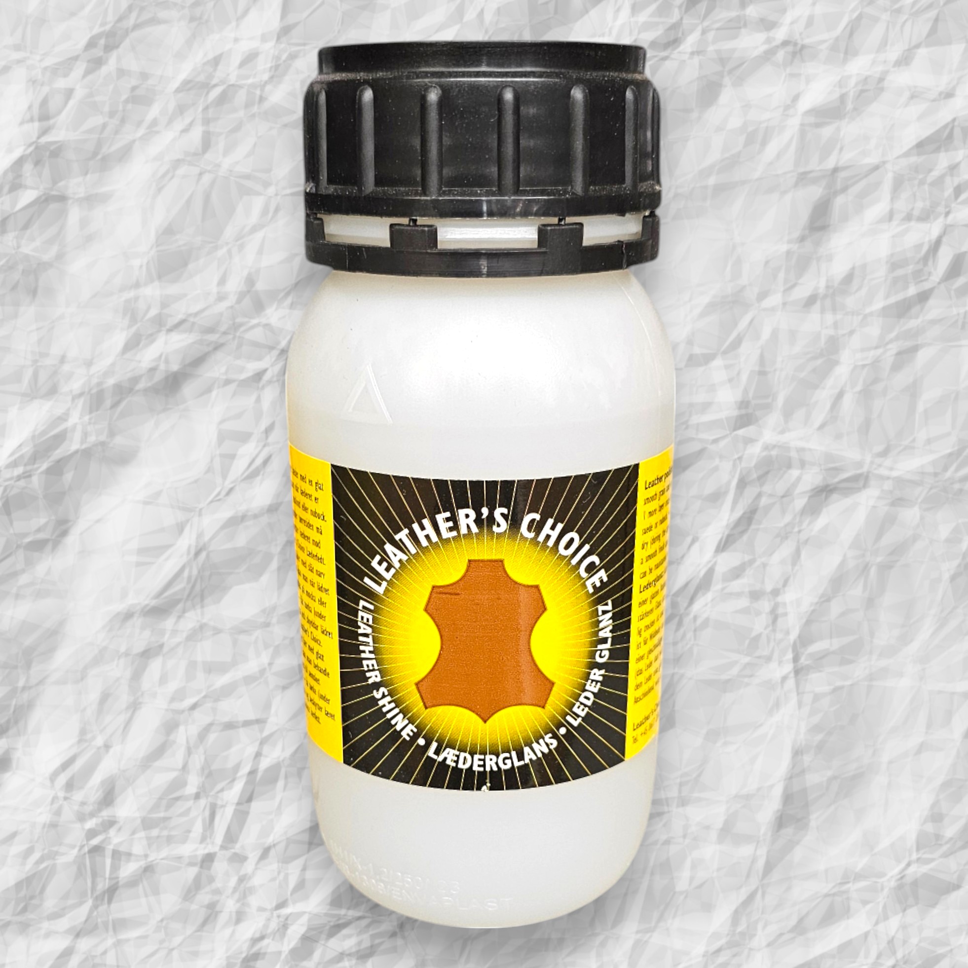 Leathers Choice lærglans påføres med en bløt fille og tørker selv opp til høyglans overflate