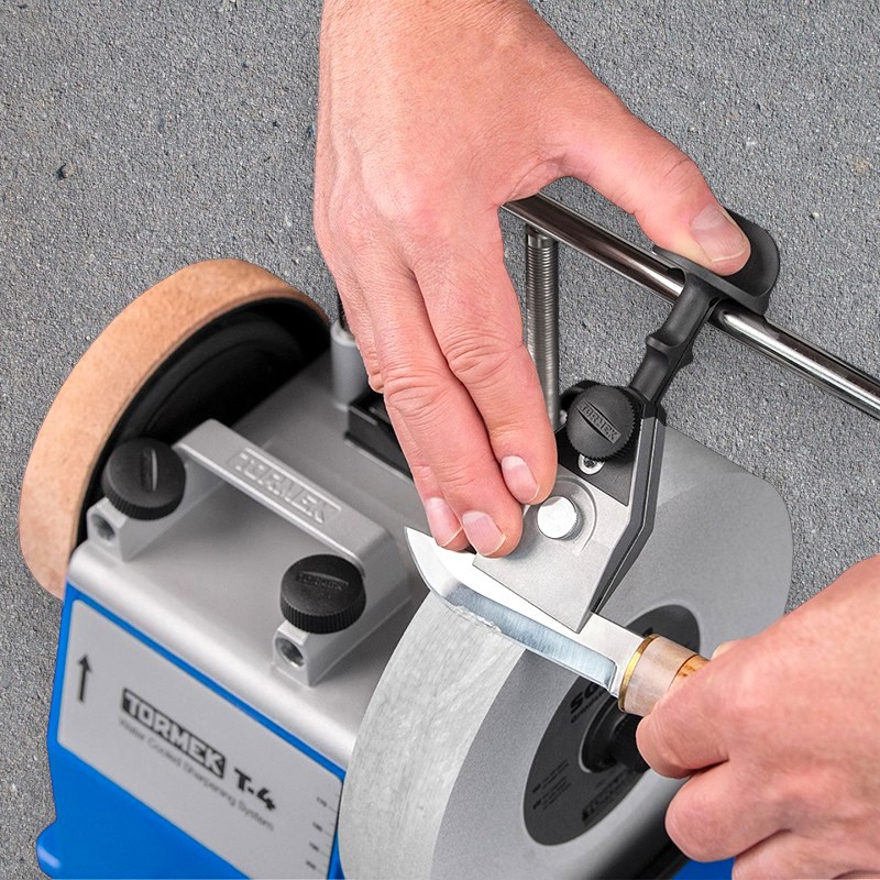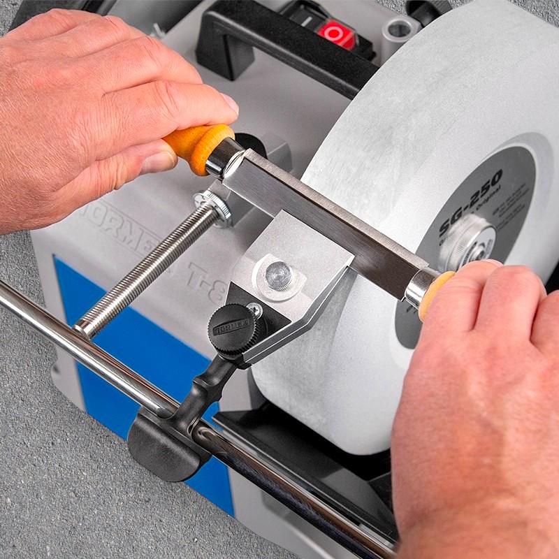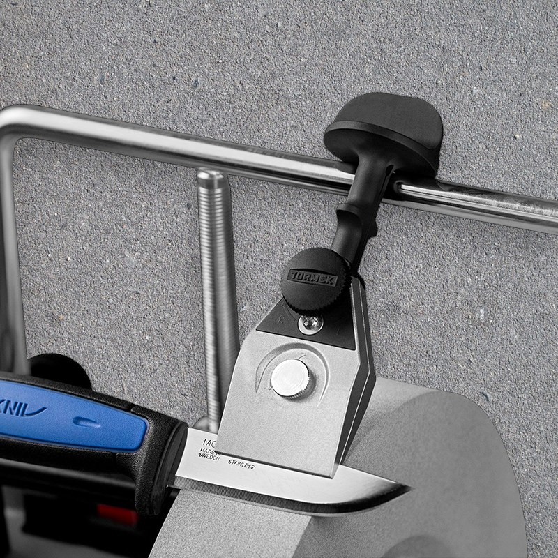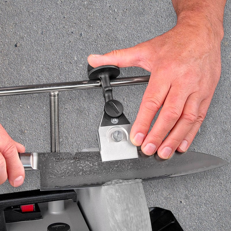 Den har to faste stoppere som tillater sliping av knivblad med mer variabel høyde.