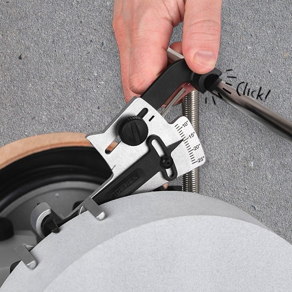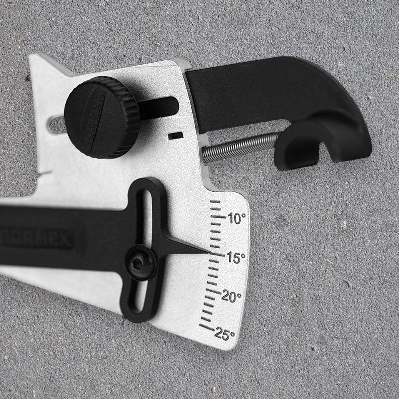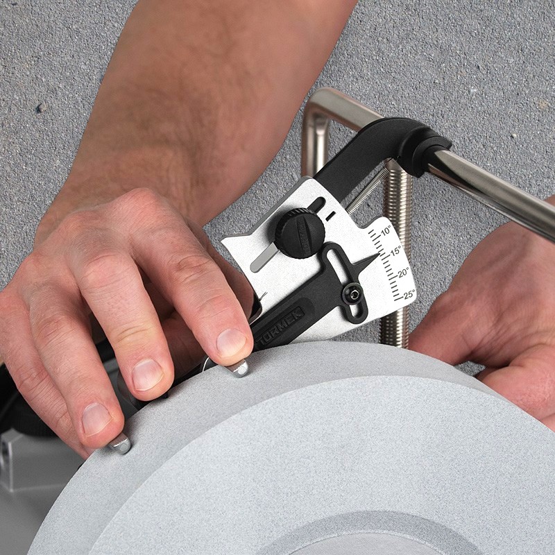 Med Tormek KS-123 vinkel justerer for kniver stiller du inn nøyaktig slipevinkel for alle typer kniver.